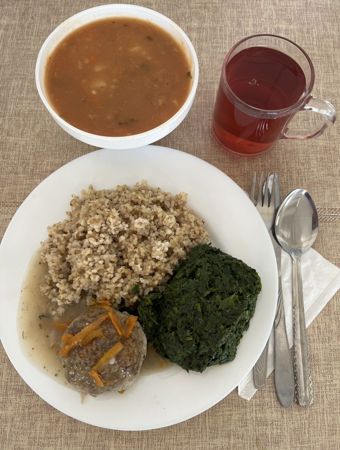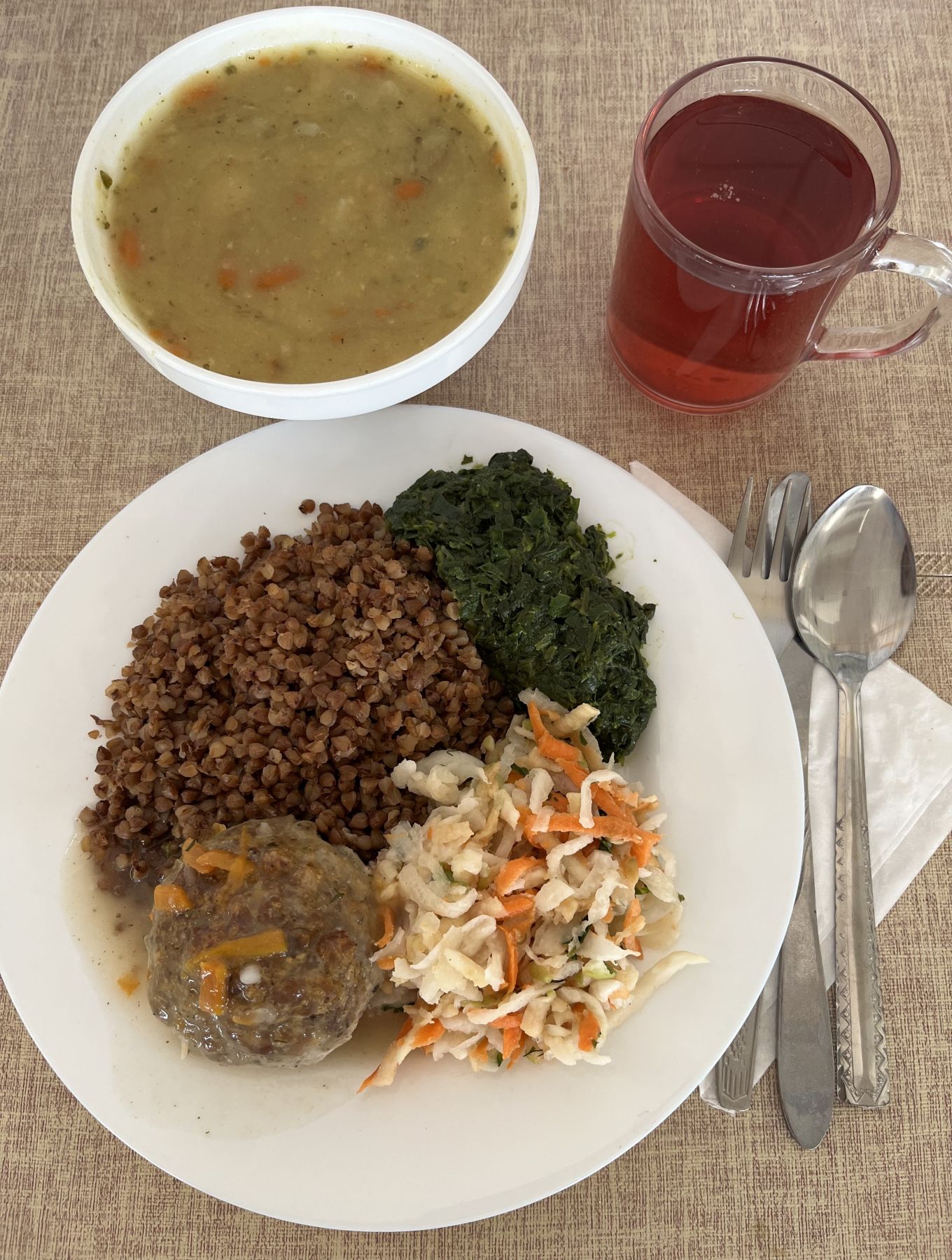 Kasza jaglana na sypko 180 g Pulpet drobiowy 100 g (GLU PSZ, JAJ) Sos pietruszkowy 80 ml (GLU PSZ, MLE) Sałatka z buraczków i jabłka z olejem 200 g Kompot z aronii i czerwonej porzeczki z/c 250 ml Podwieczorek