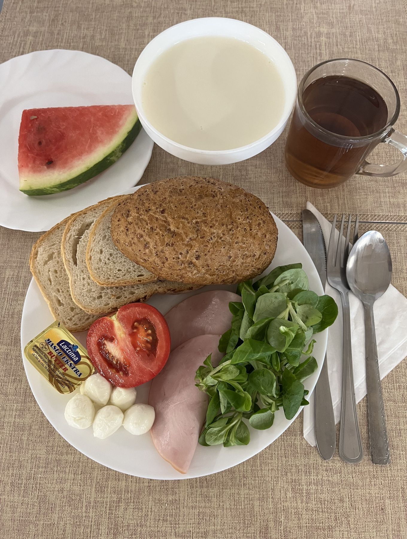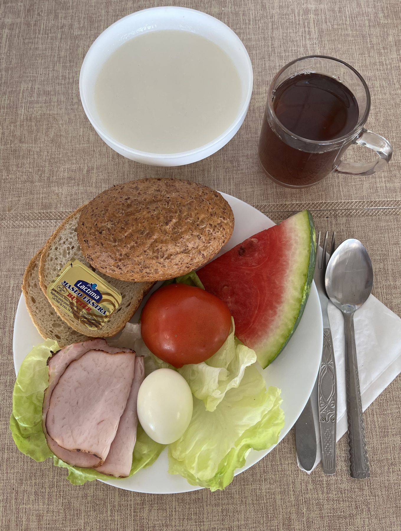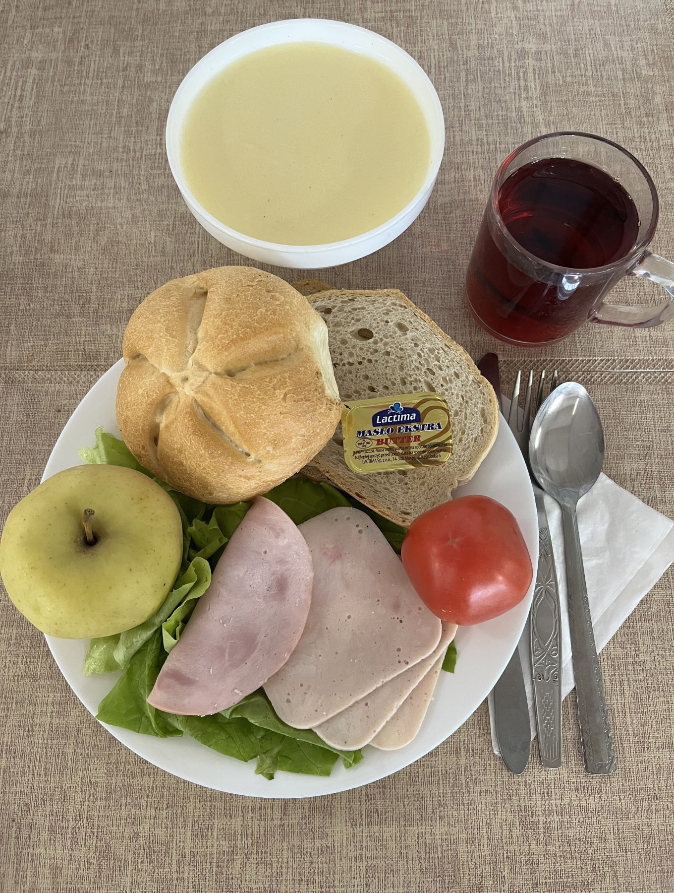 ** zamiast szynkowej Extra została podana polędwica wiśniowa wędzonka wieprzowa z dodatkiem wody wędzona parzona 50 g (GLU PSZ, SOJ)