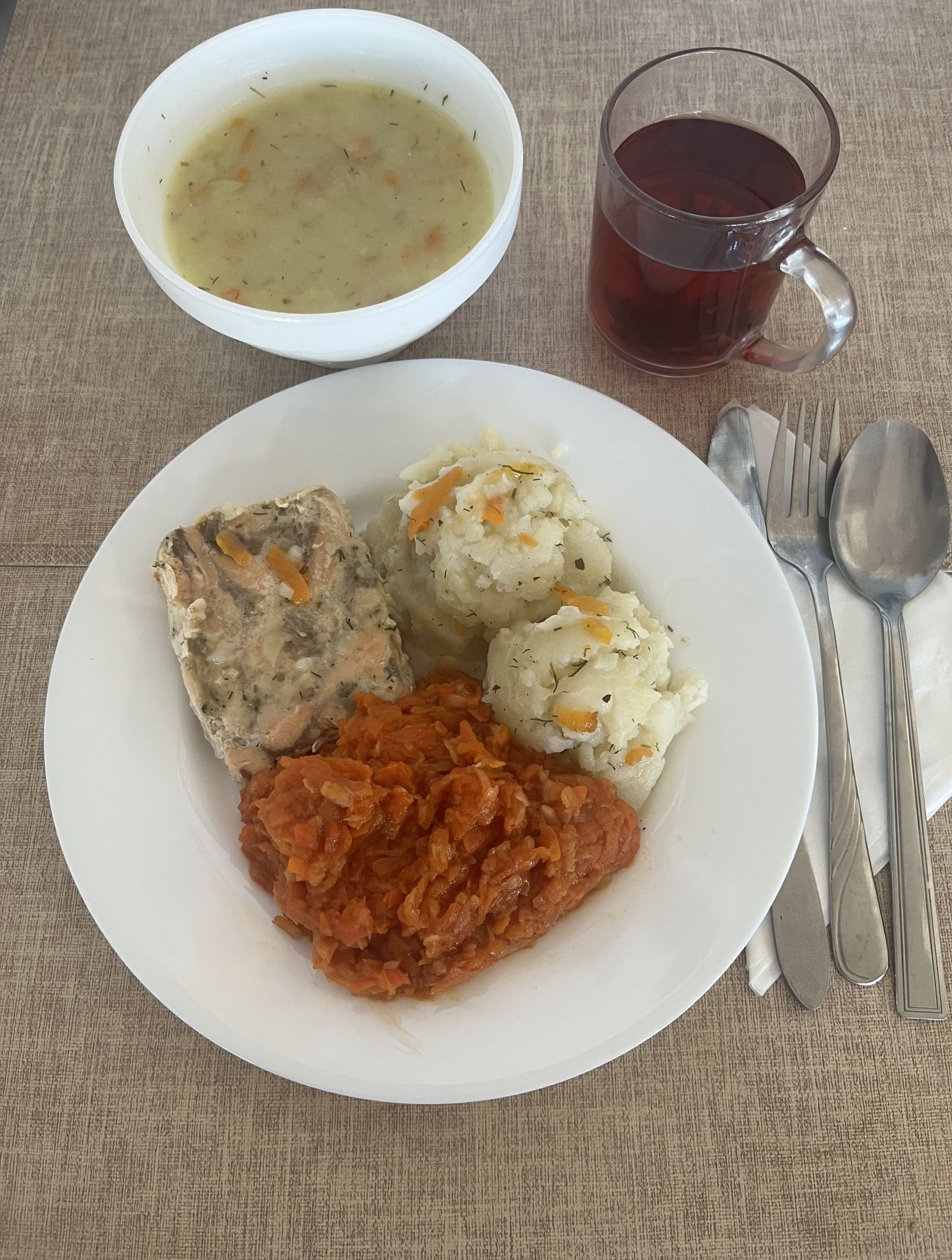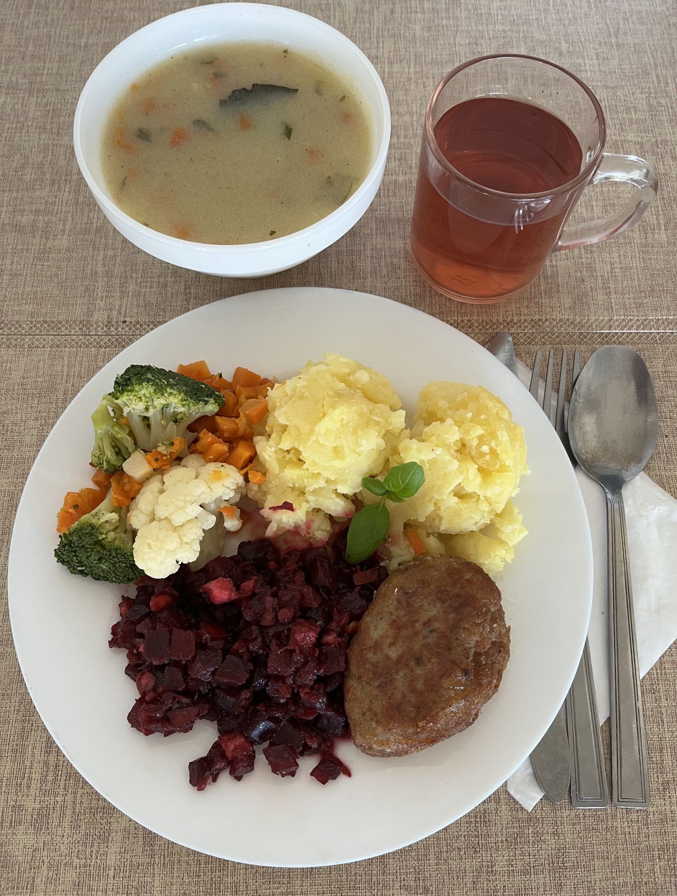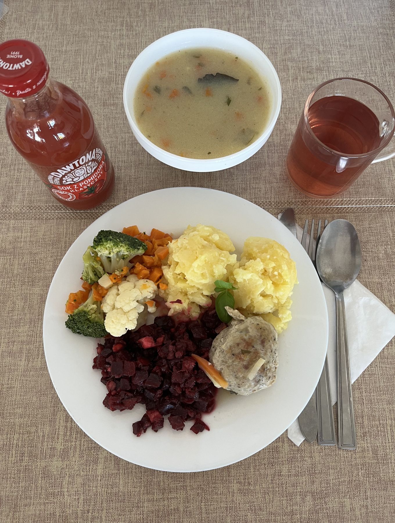 | DIETA PODSTAWOWA Brokułowa z ziemniakami 300 ml (GLU PSZ, MLE, SEL) Kasza jaglana na sypko 180 g Pulpet drobiowy 100 g (GLU PSZ, JAJ) Sos pietruszkowy 80 ml (GLU PSZ, MLE) Sałatka z buraczków i jabłka z olejem 200 g Kompot z aronii i czerwonej porzeczki z/c 250 ml |