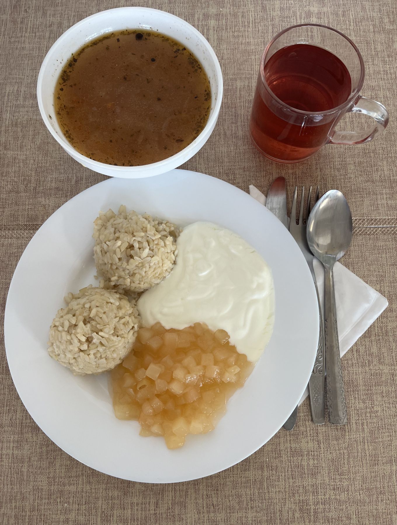 DIETA PODSTAWOWA Barszcz ukraiński z ziemniakami 300 ml (GLU PSZ, MLE, SEL) Sos jogurtowy naturalny 80 g (MLE) Ryż z jabłkiem prażonym i cynamonem 300 g Woda mineralna n/g 0,5l 1 szt |