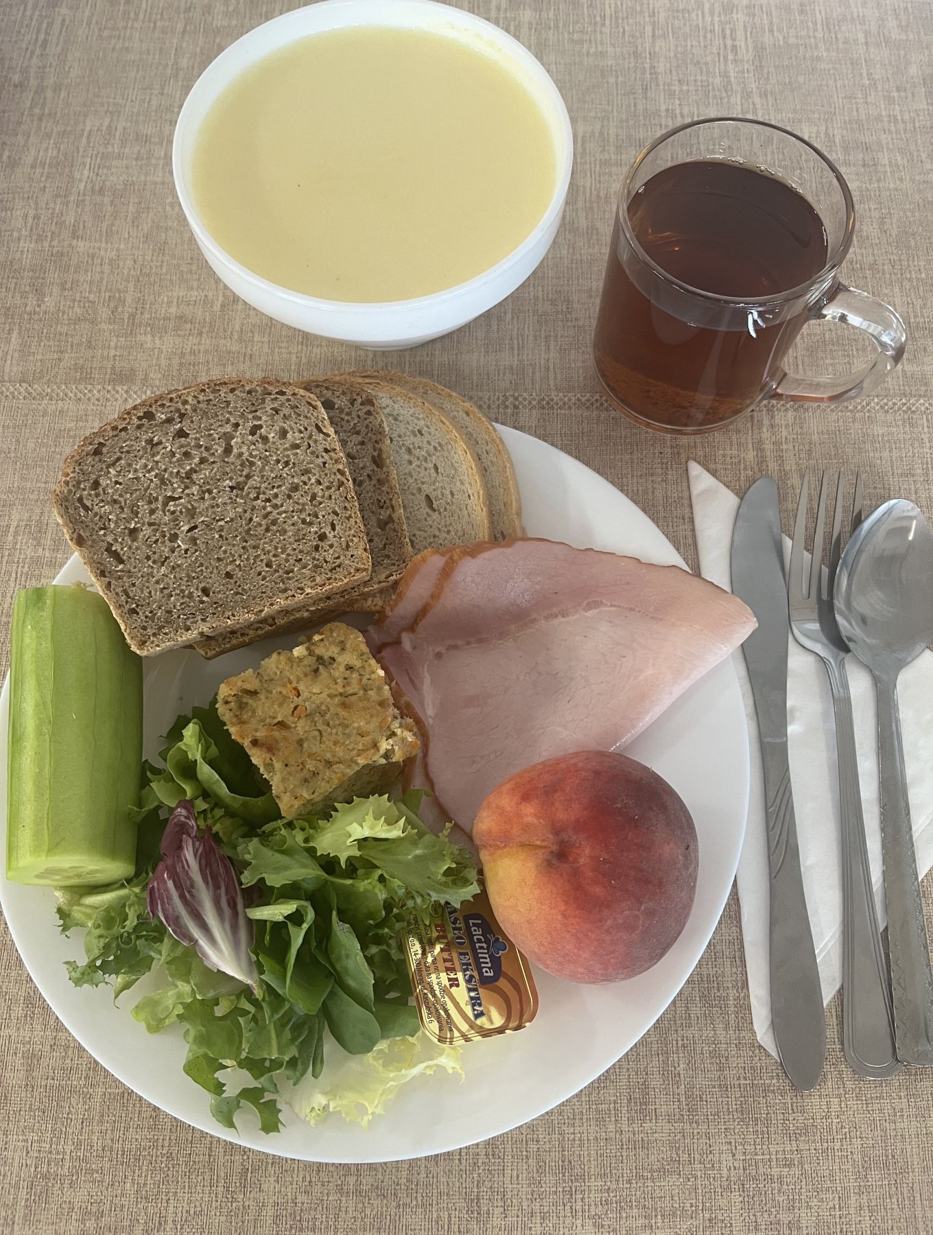 DIETA PODSTAWOWA Płatki jęczmienne na mleku 300 ml (MLE, GLU JĘCZ) Chleb mieszany pszenno-żytni 70 g (GLU PSZ, GLU ŻYT) Chleb razowy żytnio-pszenny 50 g (GLU PSZ, GLU ŻYT) Masło extra 82% 10 g (MLE) Szynkowa drobiowa - produkt drobiowy, grubo rozdrob., wędzony, parzony 30 g Serek a'la fromage z ziołami 80 g (MLE) Sałata zielona 20 g Pomidor 50 g Herbata czarna granulowana z/c 250 ml Jabłko 150 g |